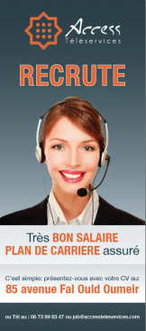 Access Teleservices Envoyez nous votre candidature Mme ETTAJI ou bien venez nous voir quand vous voulez entre 9h00 et 18h00 au 85 avenue FAL OULD OUMEIR Agdal Rabat.