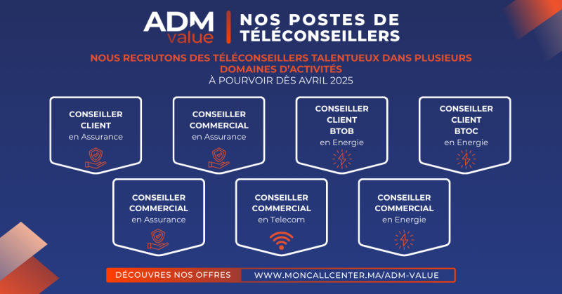ADM Value recrute des téléconseillers à Rabat !