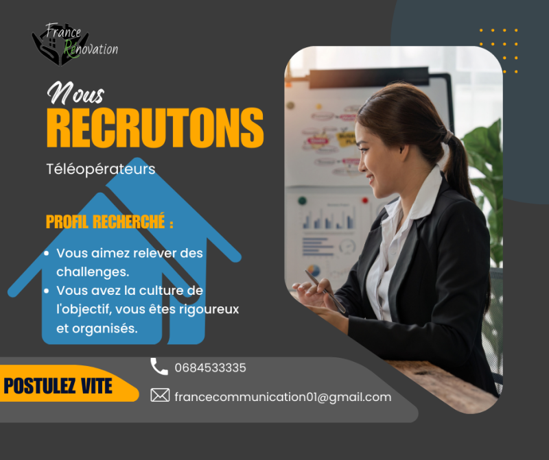 France Rénovation recrute pour une opération simple de prise de RDV pour...Photos d'actualité