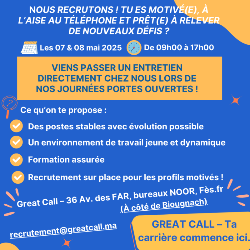 ???? Envoie ta candidature en DM ou à recrutement@greatcall.ma