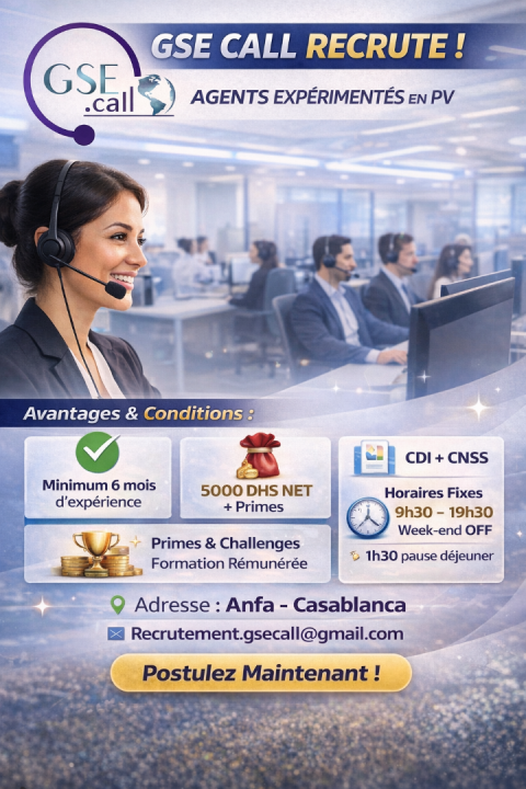 ???? Envoyez votre CV à : Recrutement.gsecall@gmail.com