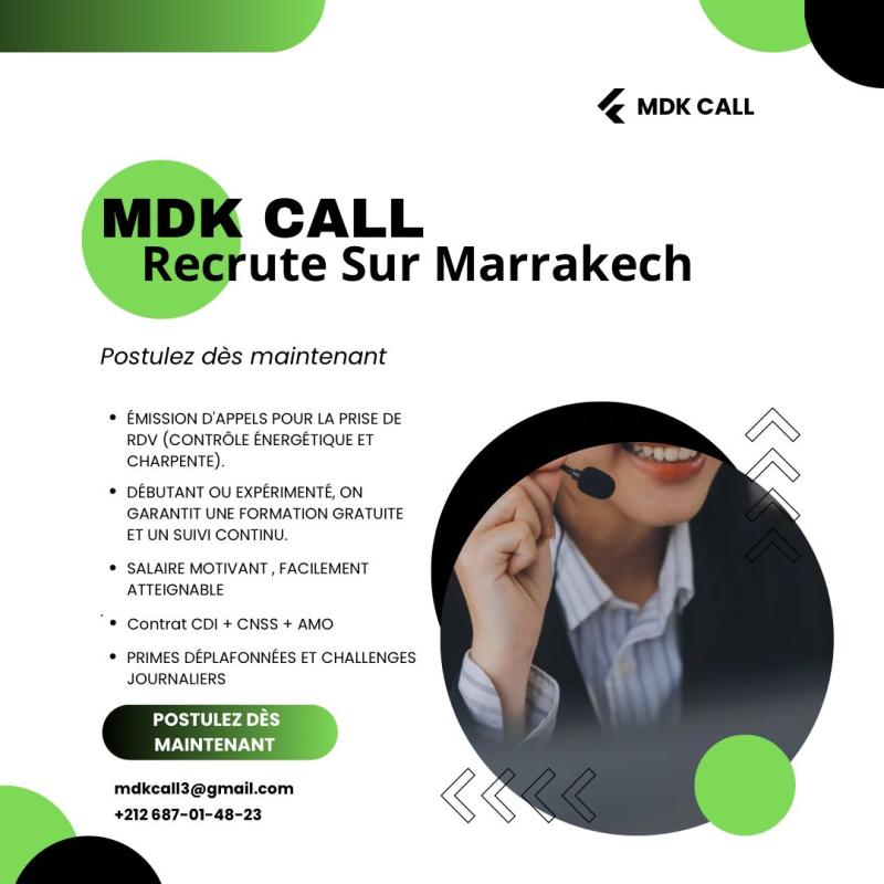 MDK CALL recrute a Marrakech des Téléconseillers (avec ou sans expériences) en Prise de RDV pour la charpente et le bilan énergétique.