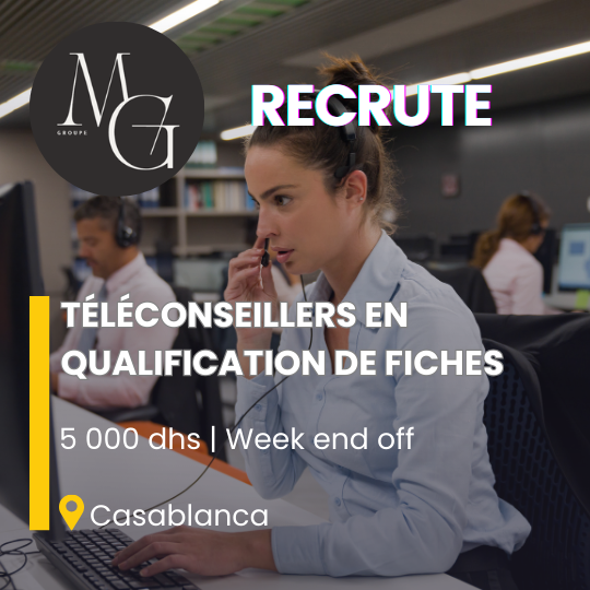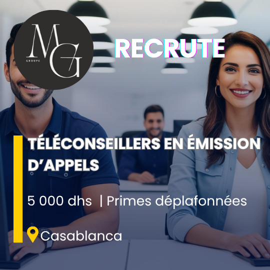 MG GROUPE recrute des Téléconseillers francophone (H/F) à Casablanca !