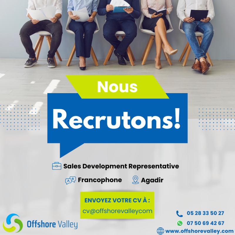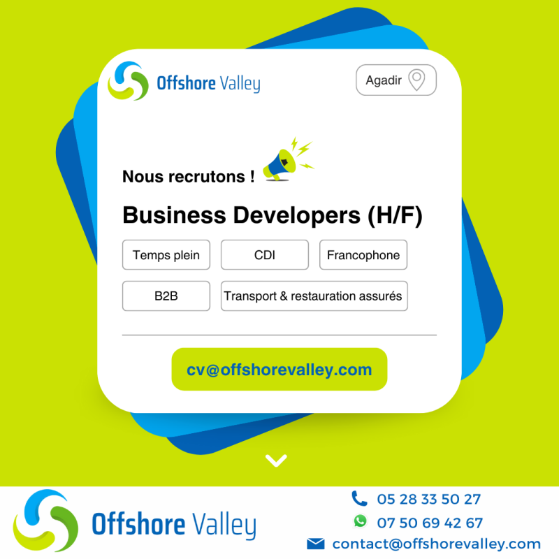 Une opportunité à ne pas rater envoyez vos candidatures par mail : cv@offshorevalley.com