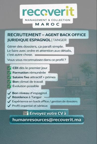 Recoverit Maroc, busca nuevos empleados en su site de Tanger, Agente de Back...Photos d'actualité