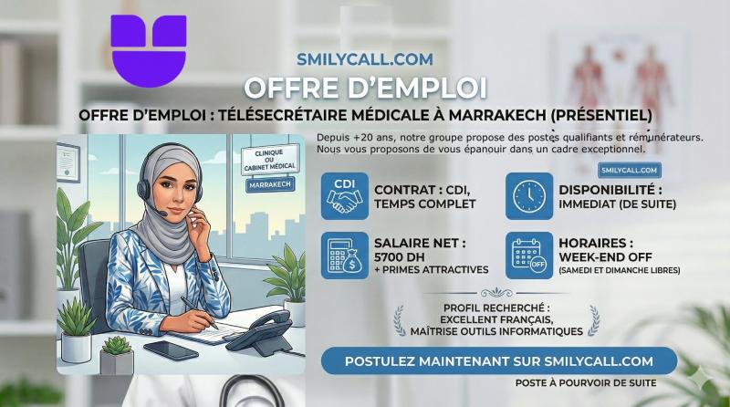 Smilycall recrute des secrétaires médicales sur Marrakech.