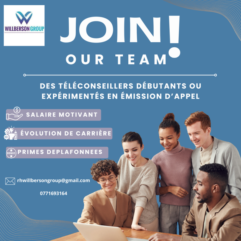 WILLBERSON GROUP vous donne la chance d'intégrer une jeune équipe sérieuse et dynamique pour le poste de téléconseiller(ère) avec une formation gratuite et un salaire motivant